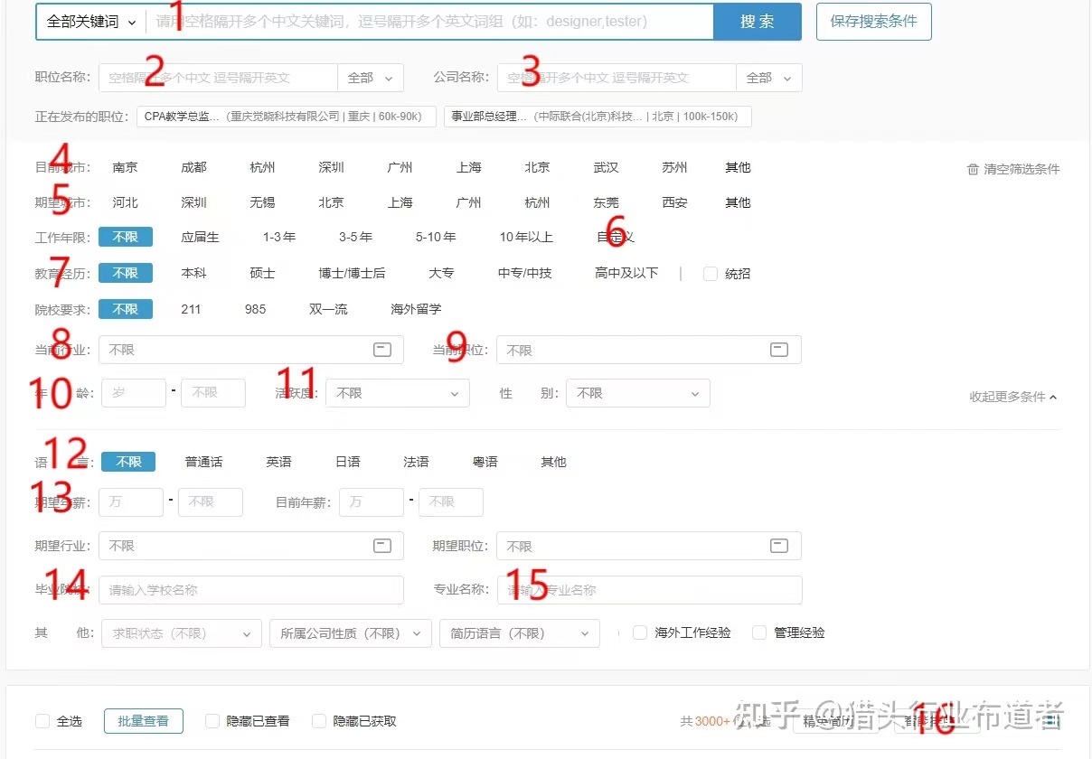 3:要把獵聘網(wǎng)規則吃透,能夠比別人多搜索出1-3倍的候選人